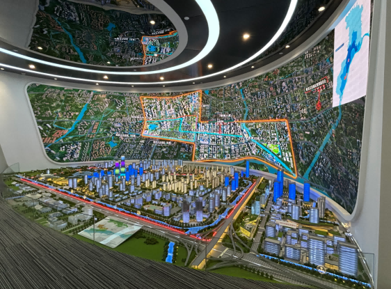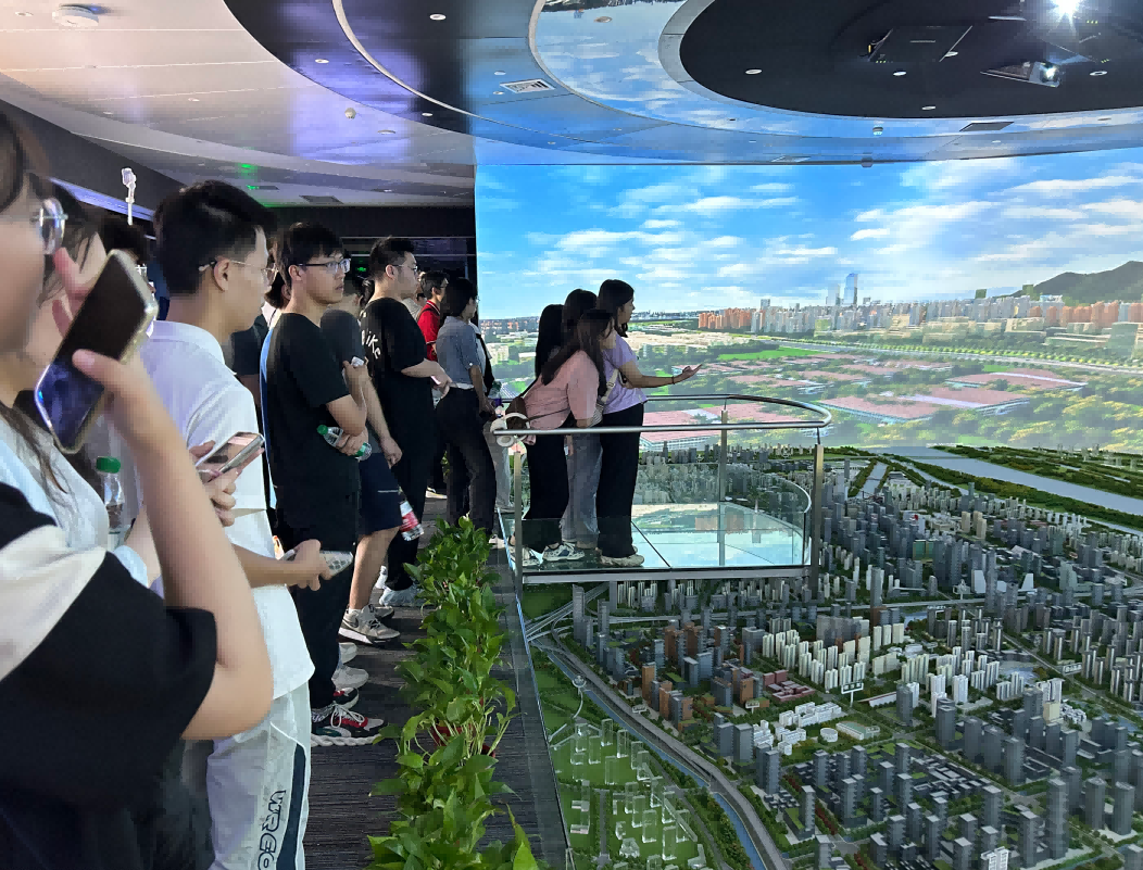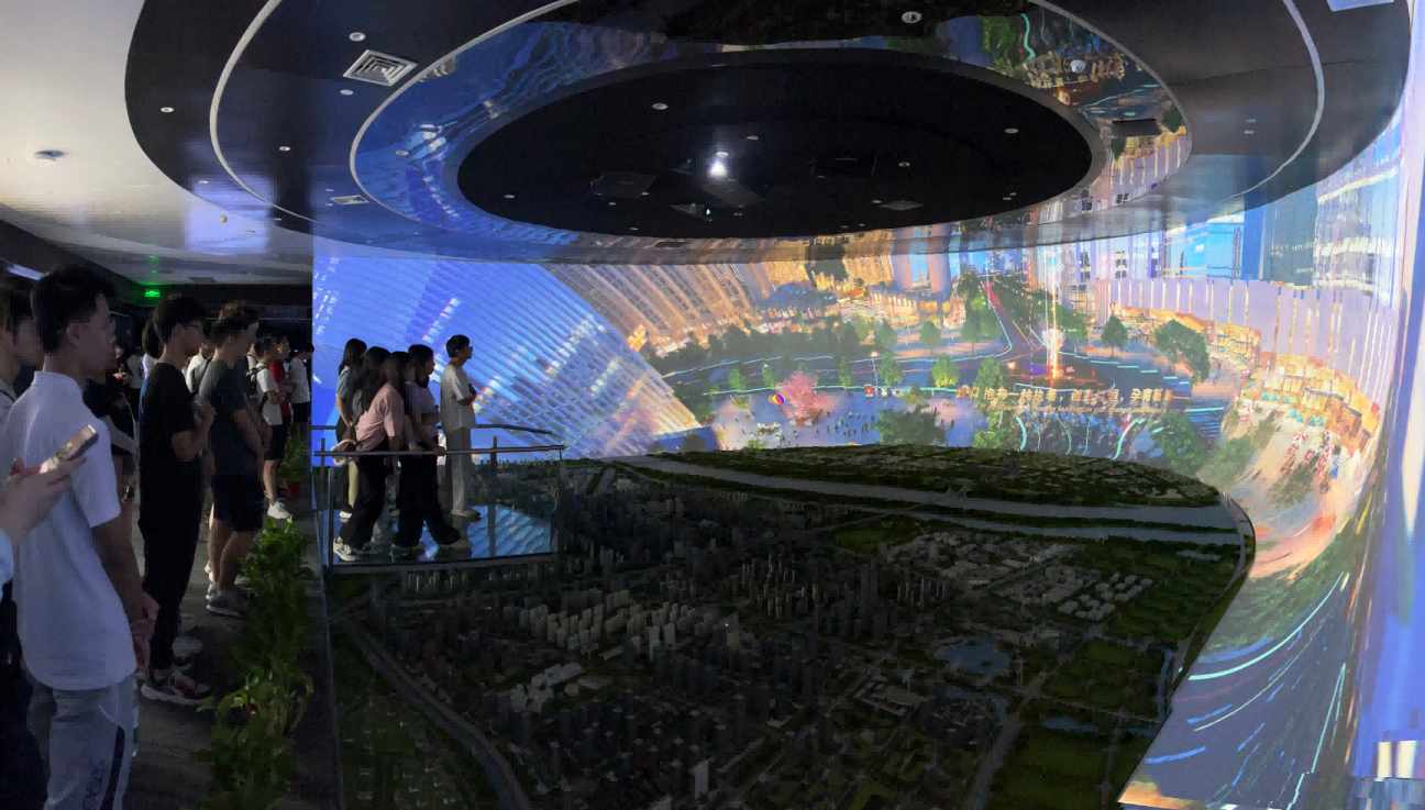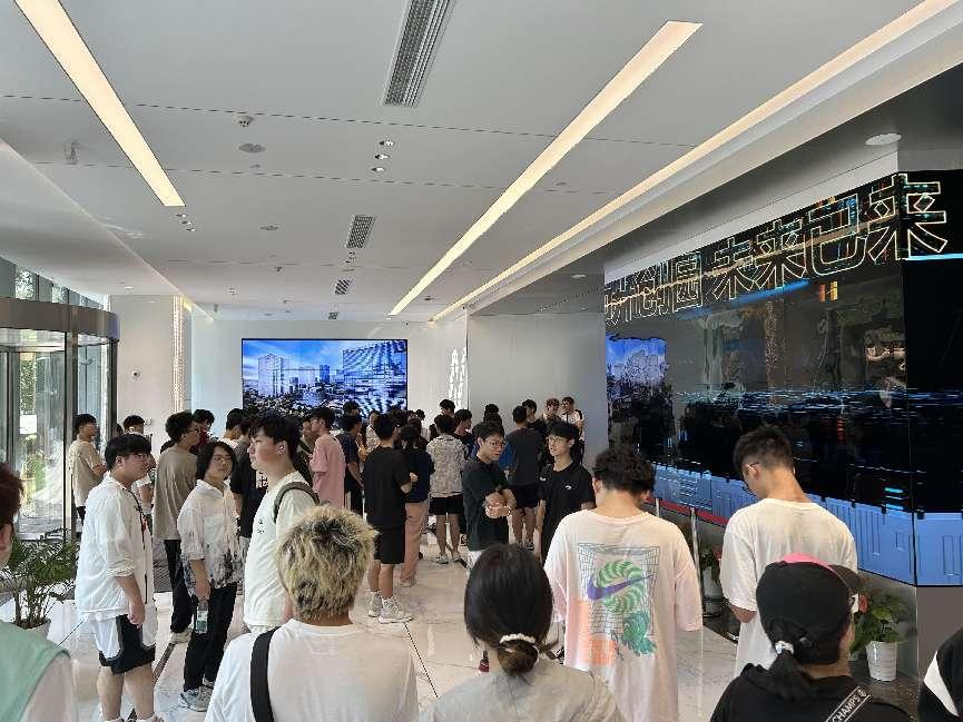 园区内现代建筑群错落有致,每一砖一瓦都蕴含着创新和科技的基因。尊龙凯时z6com科技IT菁英暑期实训营的学员们怀揣着对科技的无限憧憬步入研创园展厅。展厅内部设计充满科技感,一块块巨大的模型和显示屏映入眼帘,生动展现了研创园的科技规划,以及从梦想走向现实的开展历程。